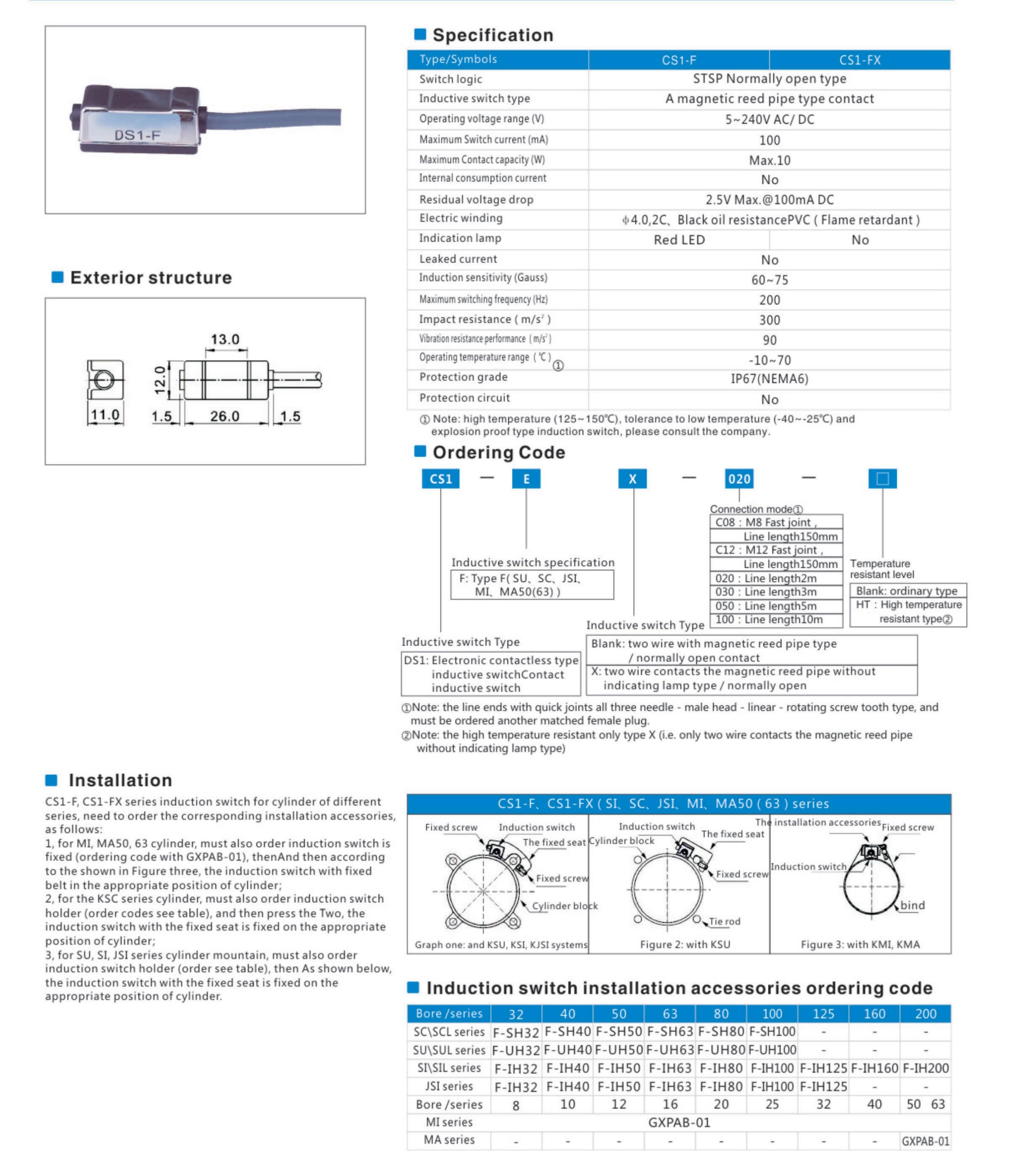 CS1-F Series Magnetic reed pipe type contact type induction switch