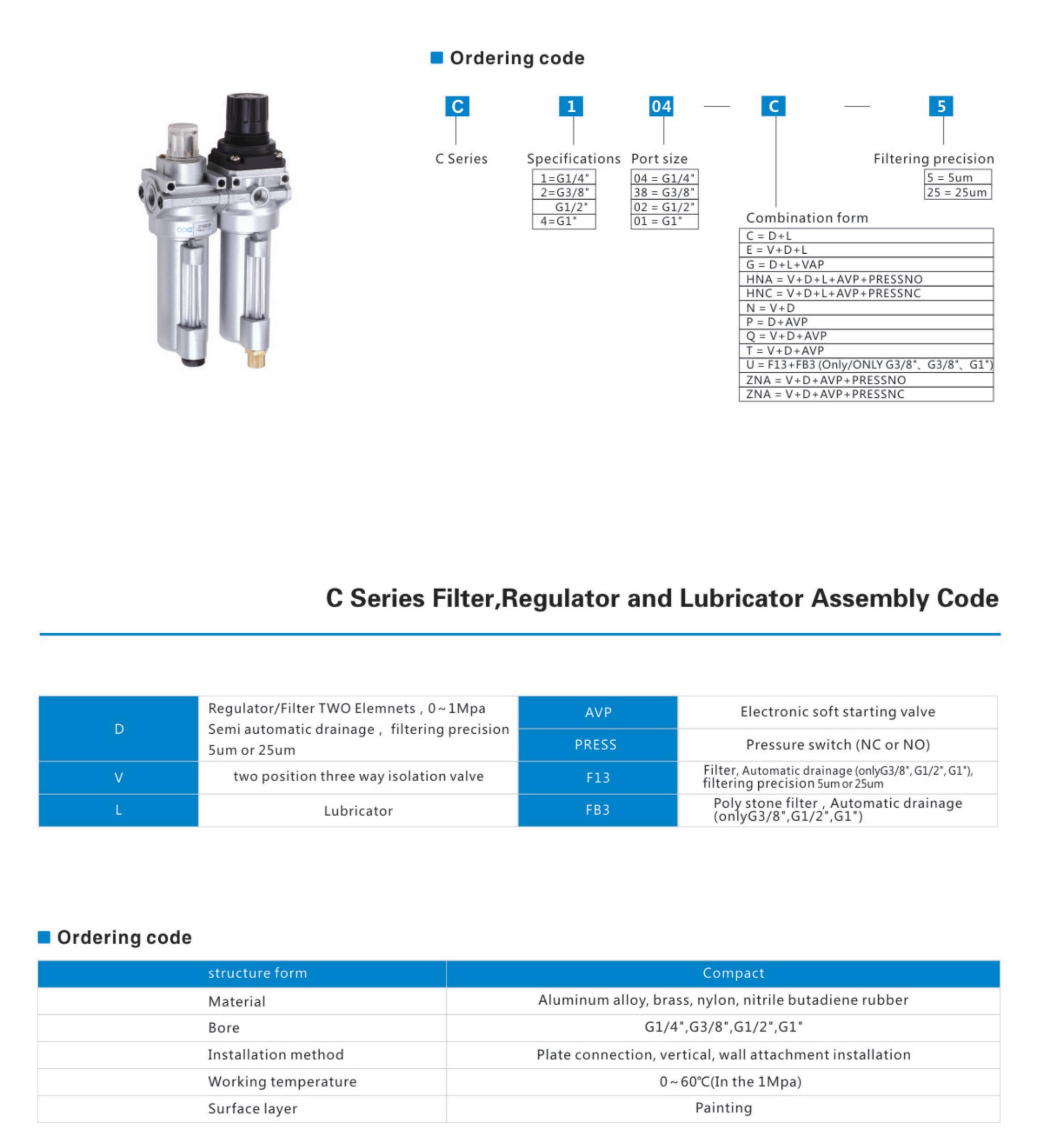 C Series Filter,Regulator and Lubricator Assembly